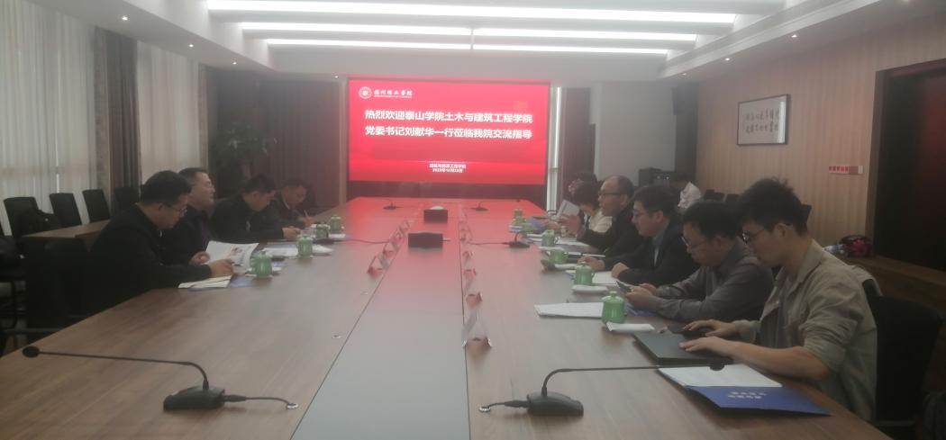 刘献华介绍了泰山学院土木与建筑工程学院基本情况,并对我院的发展建设给予高度评价。他表示,要在学科建设、硕点建设以及产业学院建设等方面学习借鉴我院先进经验和做法,并希望我院给予支持和指导。